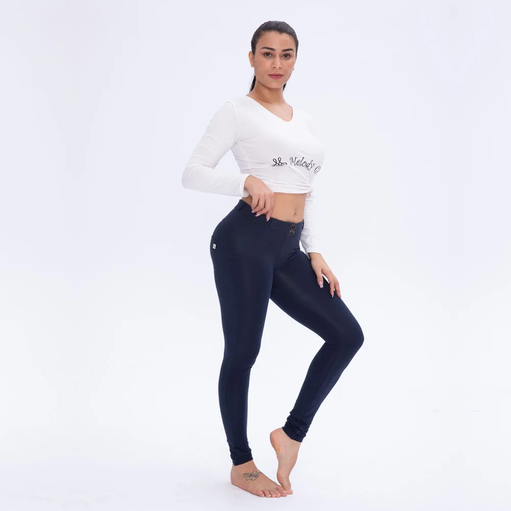 Knitted Mid Rise Skinny Push Up Pants Navy Blue